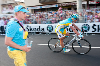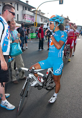 Следим за гонкой, болеем за Сашу. Мысленно налегаю на педали вместе с ним. Начинают подходить организаторы и давать расклады по итогам. Итак, если Эванс не второй, то Вино получает себе в коллекцию красную майку лидера по очкам! И это при том, что в гонке есть Поццато, Фаррар и прочие! Нибали уезжает на спуске, Юра предсказывает вялый финиш Бассо, но тот как будто обидившись финиширует вторым!