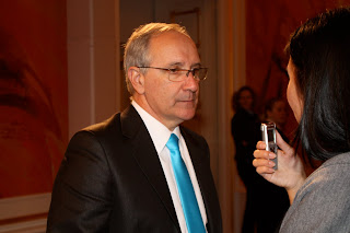 Господина Мартинелли мы "поймали" по окончании всех торжеств, он стоял в зале приемов и о чем-то разговаривал с Проскуриным младшим. Мы дождались, когда он освободится, и представившись представителями астанафанс.ком попросили дать небольшое интервью, на что он охотно согласился.