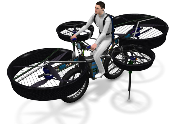 Происходить это, по задумке инженеров, должно за счет горизонтальных винтов, которые будут приводиться в движение, когда человек, едущий на этом необычном велосипеде, начнет крутить педали.