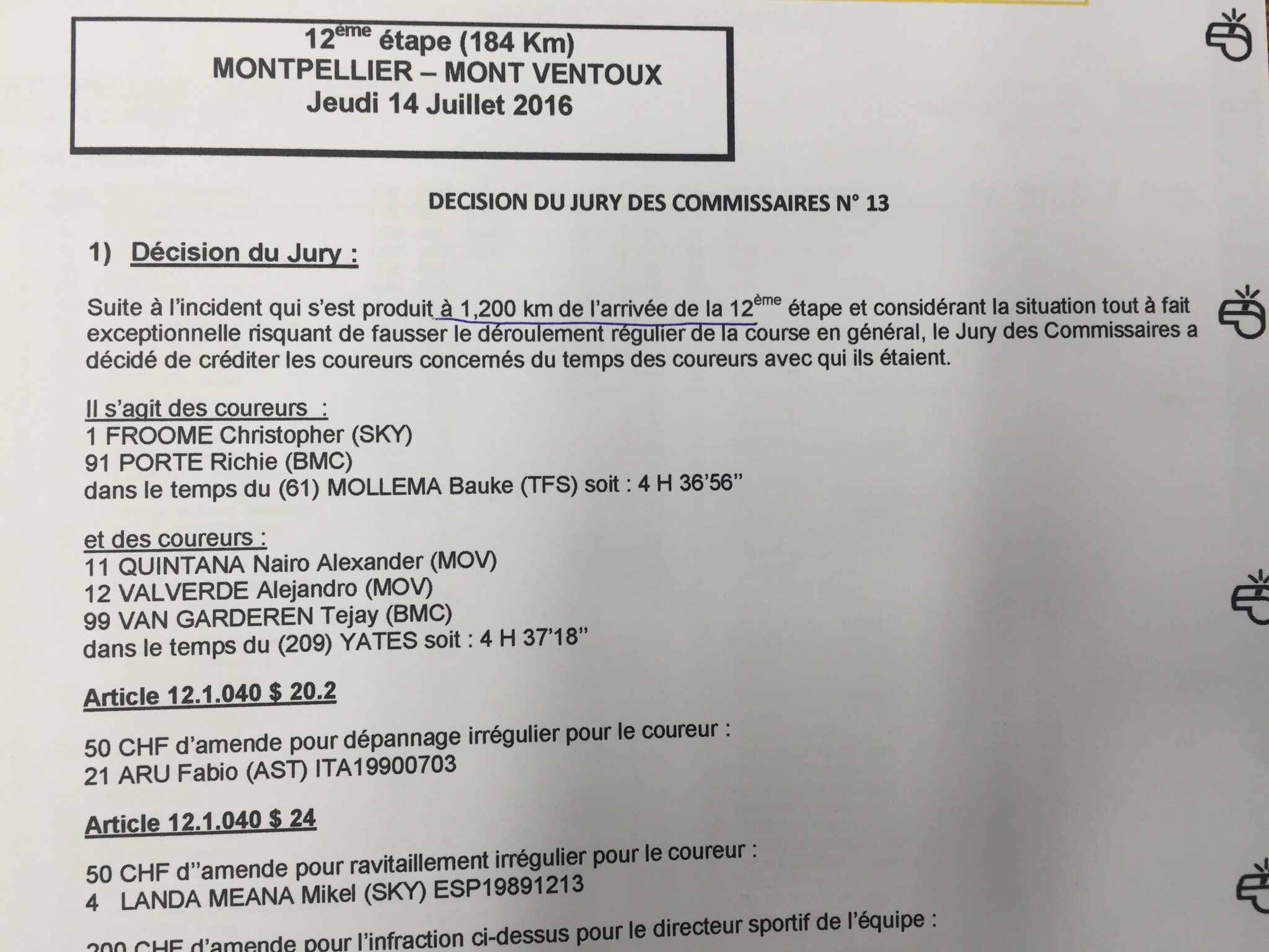 Вообще, все таки решения должны приниматься на основании правил UCI, а не желаний кого-то в дальних кишлаках, и вот, собственно, эти правила, в которых перечислены все предусмотренные штрафы за нарушения.