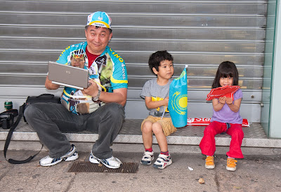 Подходит Юра, здороваемся, шутим. Олжас интересуется у меня, почему это я пришел в джерси Астаны, а Аселя экипировкой не выделяется? Это конечно вопрос в самое яблочко, но я успеваю увернуться и вопрос рикошетом улетает к Юре: "Юра, ты не знаешь, почему у моей жены нет майки Астаны?" Юра от вопроса не уворачивается и на общей фотографии степень экипированности нашей семьи резко удваивается. Спасибо Юре и что немаловажно Олжасу! Правильно заданный вопрос - половина ответа.