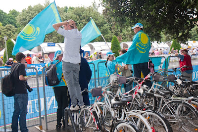 Я уже привык, что единственные казахстанские болельщики, кого я вижу рядом - это моя семья. Кругом могут ходить толпы фанатов из других стран, или вообще никаких других фанатов - обычное дело. Такие уж экзотичные виды спорта выбраны: коньки, футбол, велоспорт. На этапах Кубка Мира по конькам я привык тонуть экзотическим бирюзовым пятнышком в оранжевом голландском море. На футбол я прихожу болеть за россиян, так как наша сборная присутствием на чемпионатах не балует, и вновь мы там оказываемся одни. А велоспорт - это часто гонка, которая проводится слишком далеко от себе подобных, чтобы увидеть себя среди них.